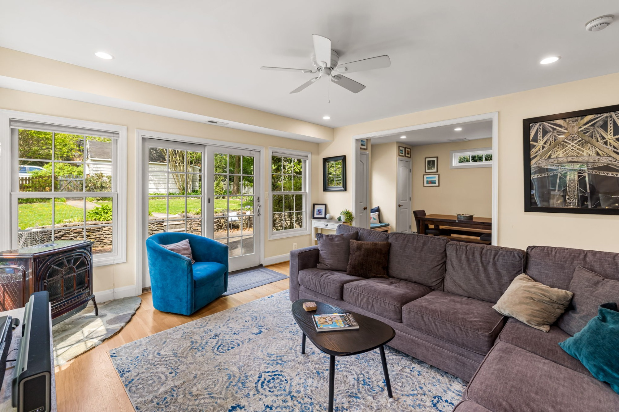 Nestled on a gentle rise in the heart of Stoneleigh, this beautifully expanded four-bedroom, three bath colonial blends timeless architectural character with refined modern living. Framed by stone walls, mature landscaping, and curated outdoor spaces, the residence offers a sense of privacy and presence that feels distinctly elevated.